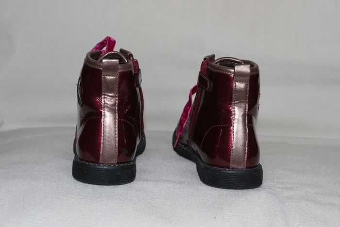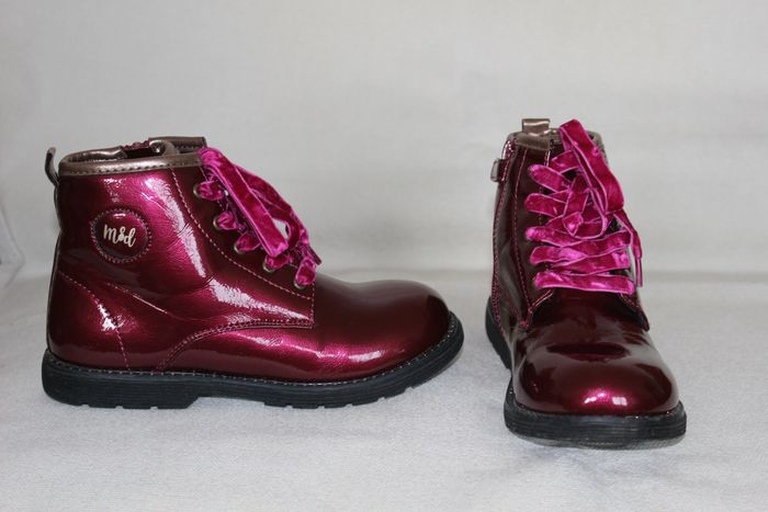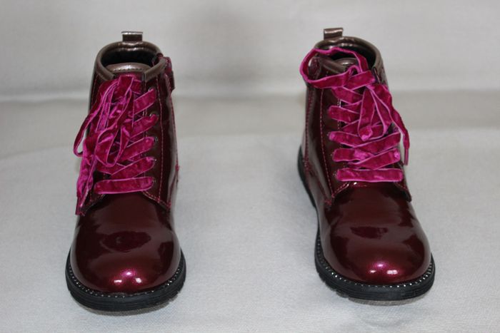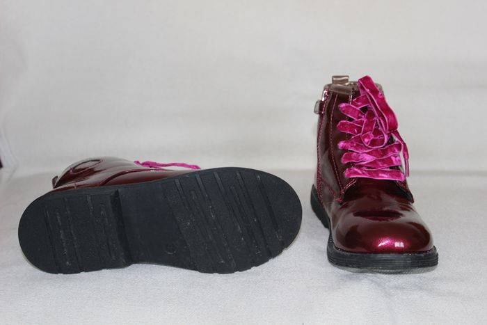 Bottines fillette Très bon état Cuir synthétique verni Pointure 32 Bordeaux Fermeture par zip sur la face interne de la chaussure et/ou lacet