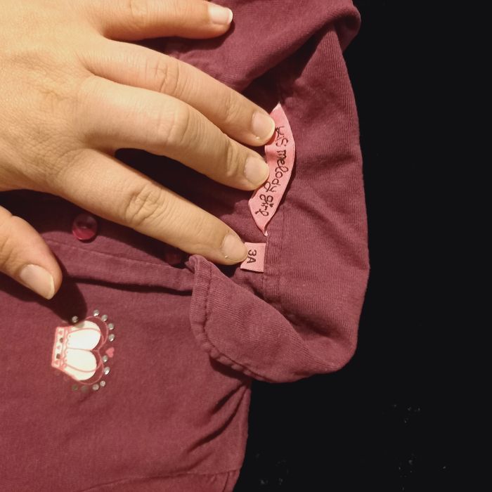 T-shirt pour enfant 3 ans, en très bon état, couleur bordeaux, manches longues, marque kiss melody girl