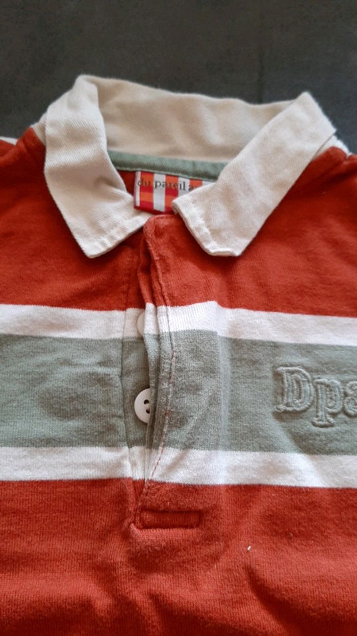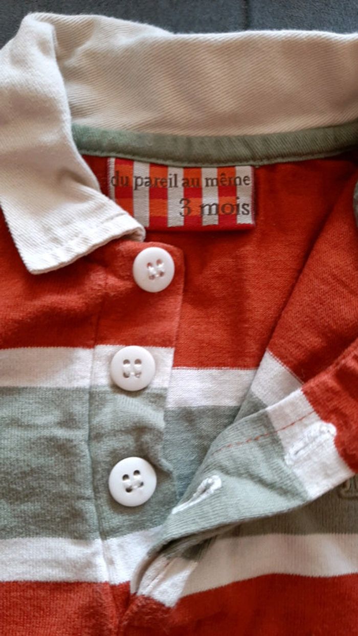 #pitchoune711GARCON3mois T-shirt bébé garçon Taille 3 mois Marque DU PAREIL AU MÊME Type polo Couleur orange, vert et beige 3 boutons au col État impeccable