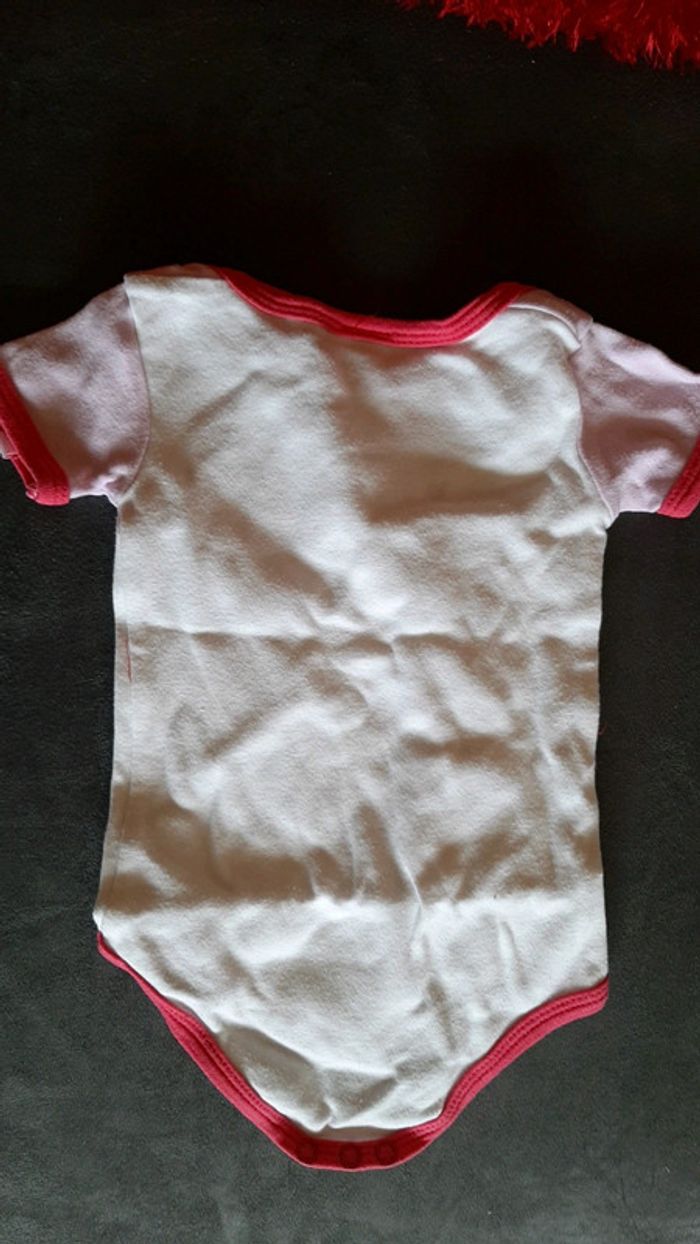 #pitchoune711FILLE9MOIS Bodie bébé fille Taille 9mois Manches courtes Pressions Couleur blanc et rose Très bon état