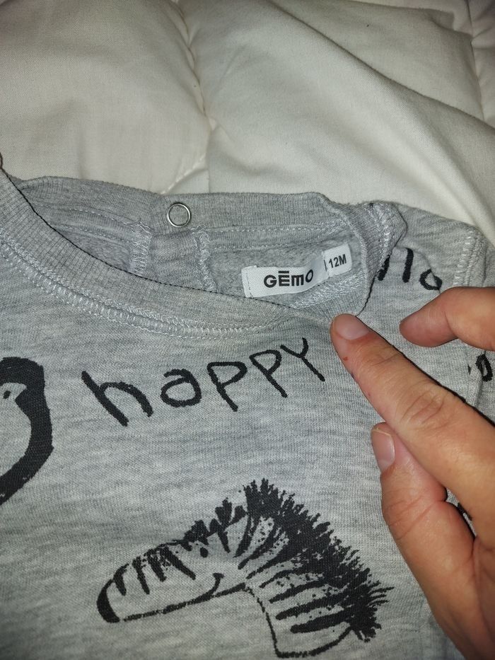 Pull de couleur gris Marque gemo 18 mois Pression à l'arrière Très bon état