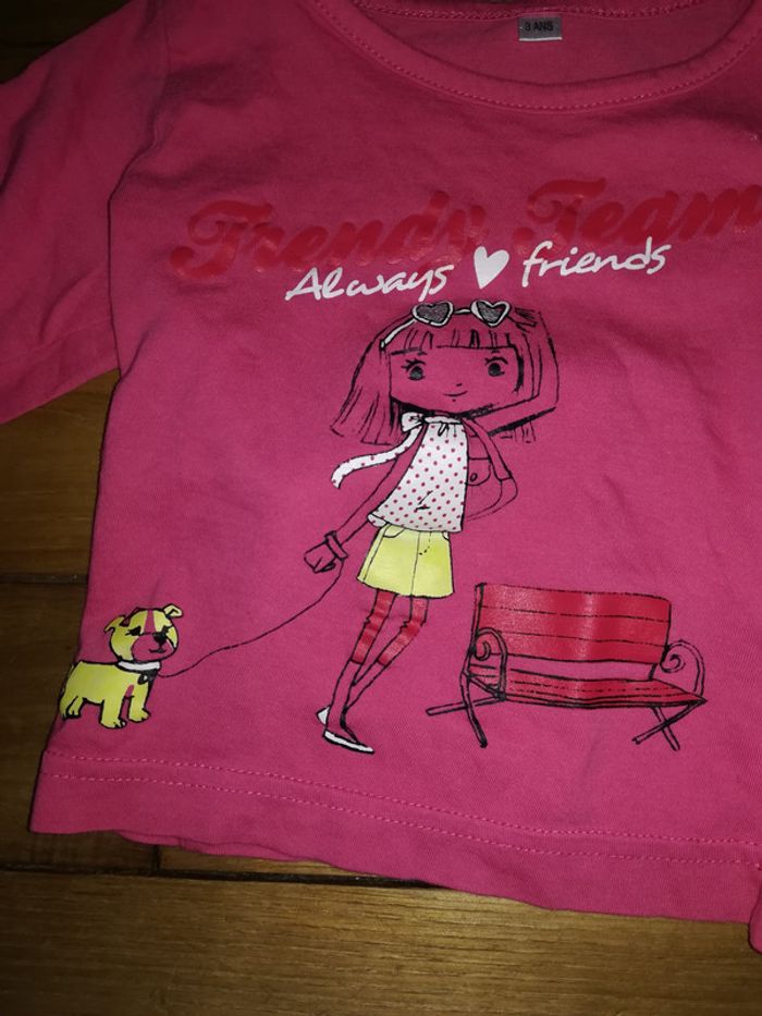 Magnifique tee shirt manches longues rose à motifs 3 ans 2€ - photo numéro 2