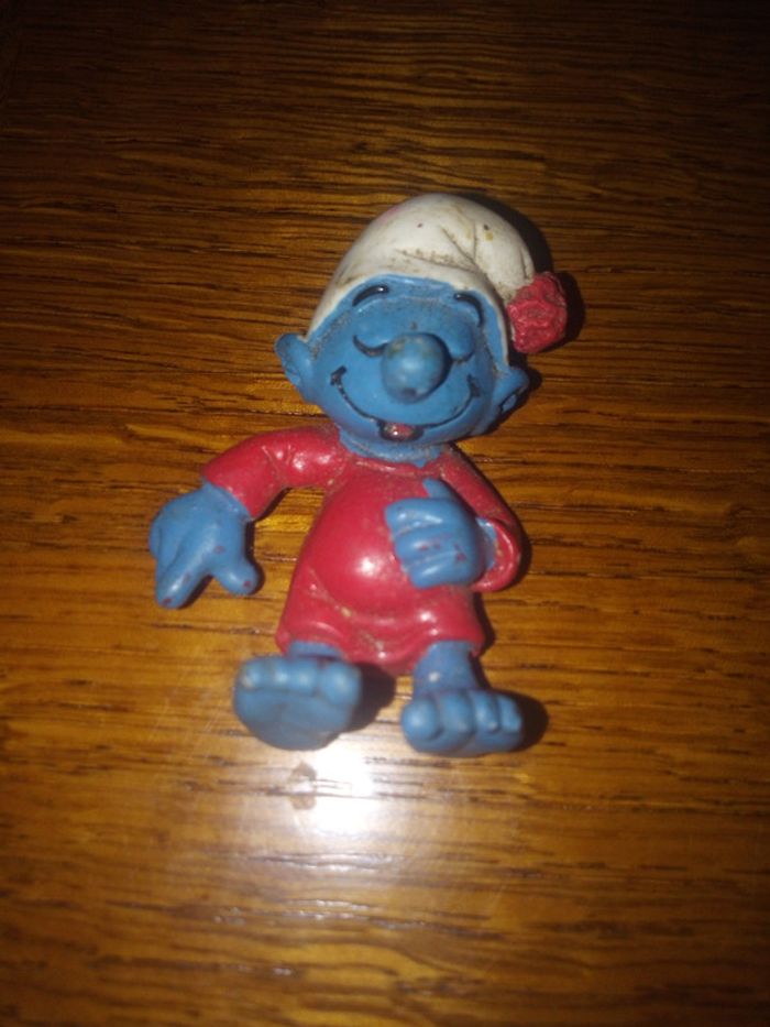 Marque schleich Schtroumpf qui dort avec bonnet de nuit