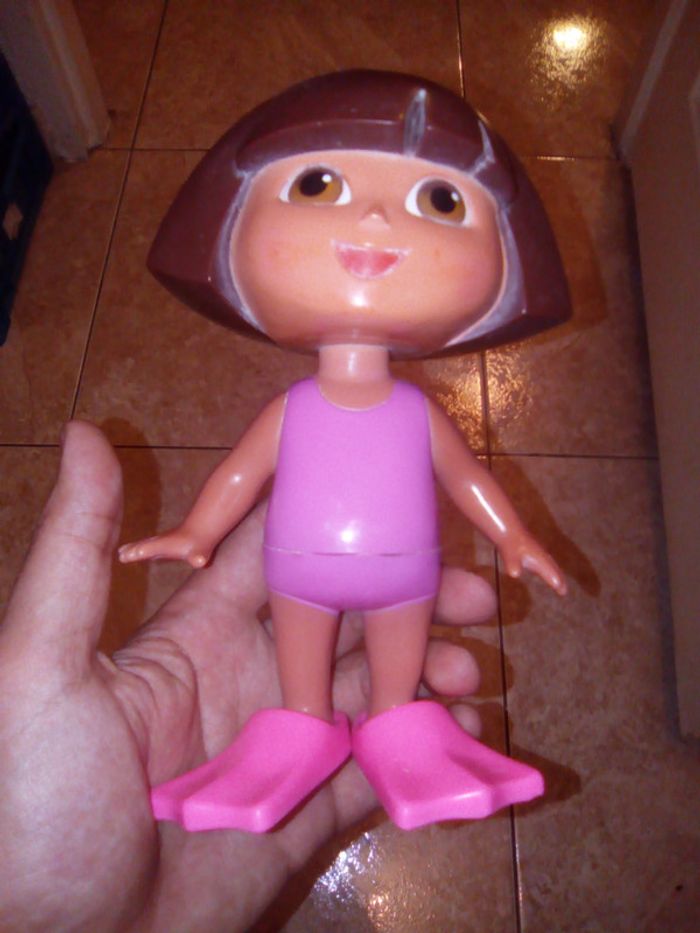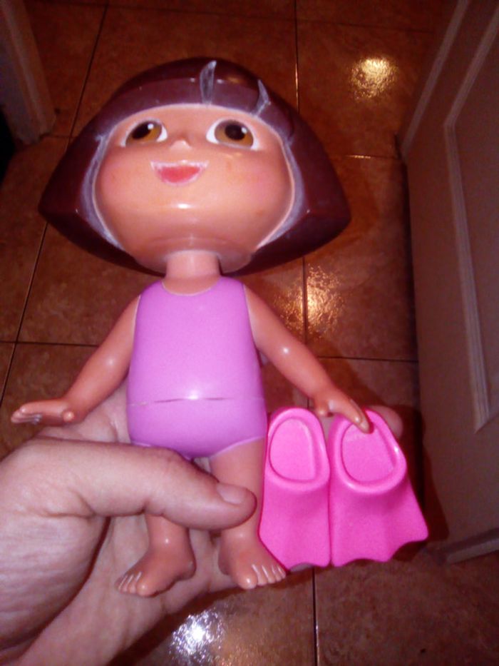 Jouet de bain / Dora avec ses palmes. Allons nous baigner ! Dites "Bath"