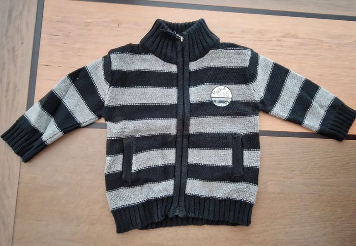 Gilet zippé rayé gris et noir orchestra 6 mois en parfait état
