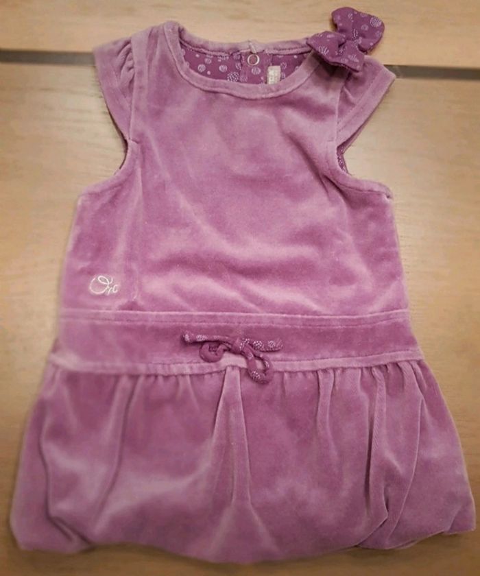 Robe velours marron et rose motif fée et fleur 6 mois Robe aubisou marron clair 6 mois Robe velours violette avec noeud orchestra 6 mois Robe chicco rouge 6 mois En très bon état #cricy1bebefille6mois