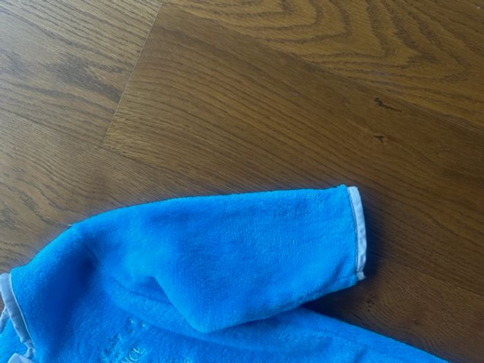 - 0 à 6 mois - Longueur à plat : 66 cm - Largeur à plat en dessous des bras : 33 cm - Bleu - 100 % polyester (tout doux)