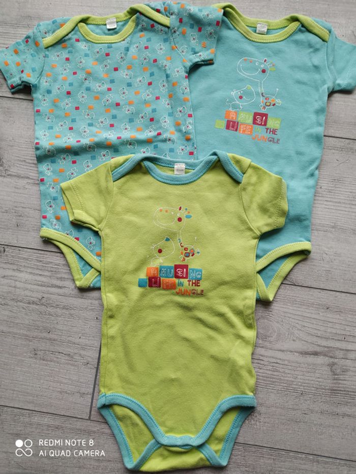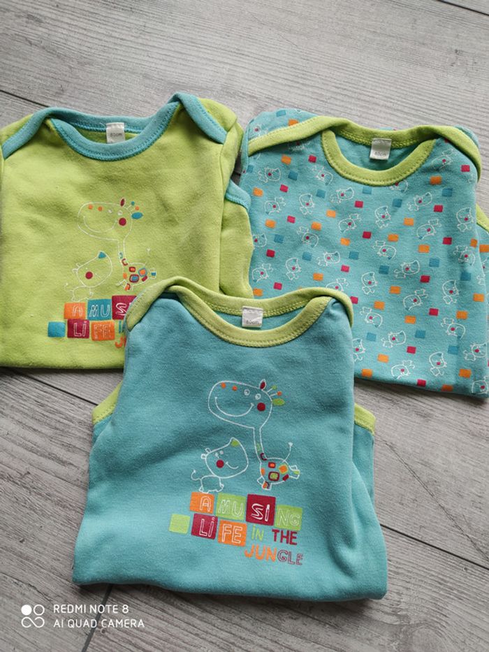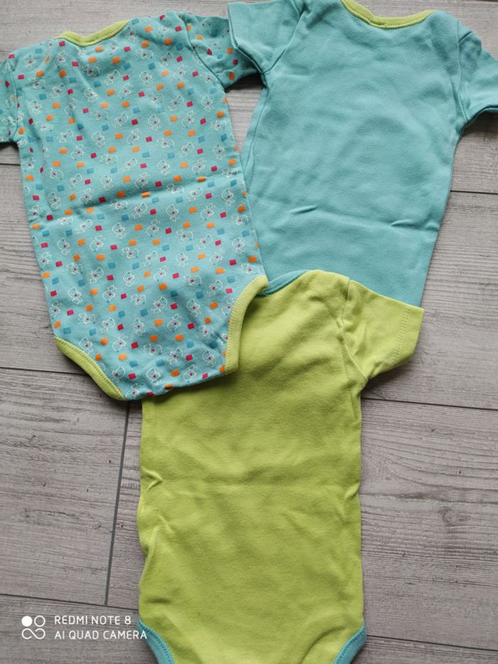 Lot de 3 bodies en bon état. Ils sont affichés en taille 18 mois, totalement irréaliste. Je les note en 9, ils taillent petit et près du corps. #bébégarçon9moiscatfred67