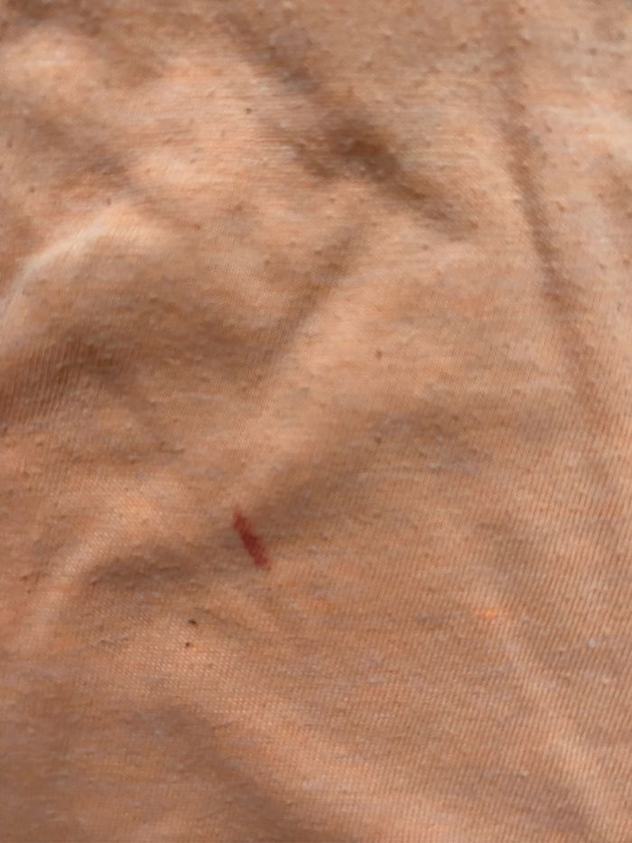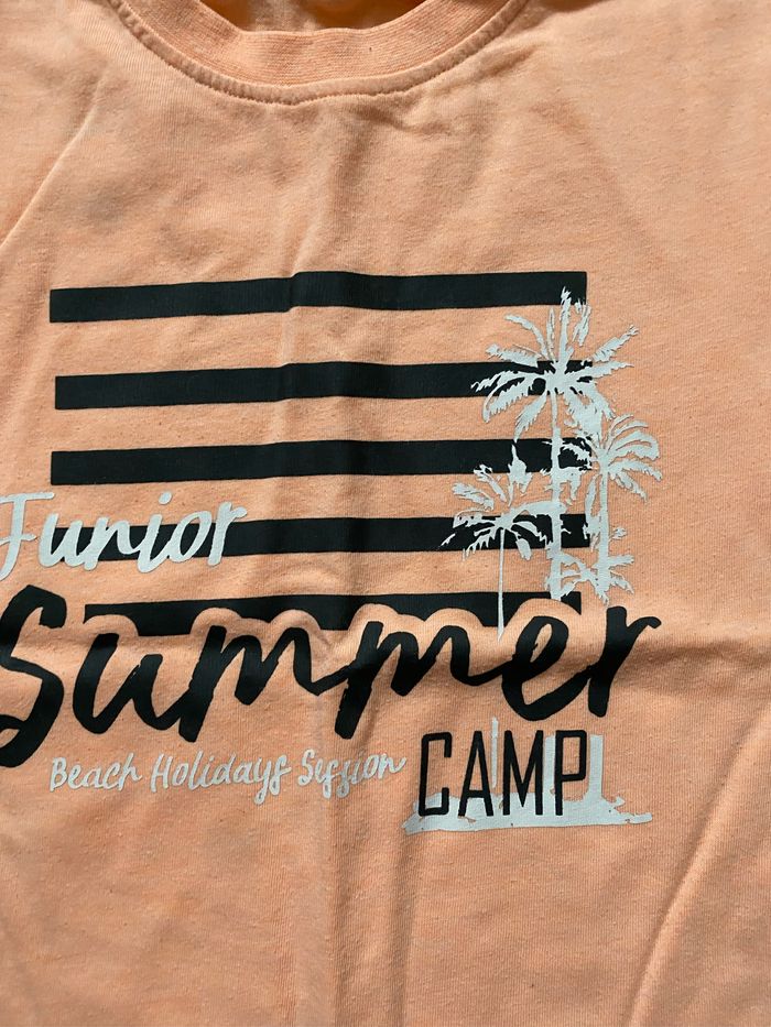 Joli tee-shirt couleur saumon en bon état. Une trace de feutre mais pas de trous