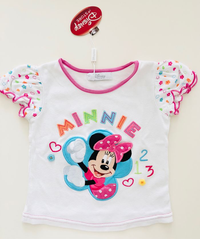 Magnifique tee-shirt Minnie acheté en boutique officiel Disney Store Taille 2-3 ans Matière qui peluche un peu Article neuf avec étiquette Prix d’achat 25€