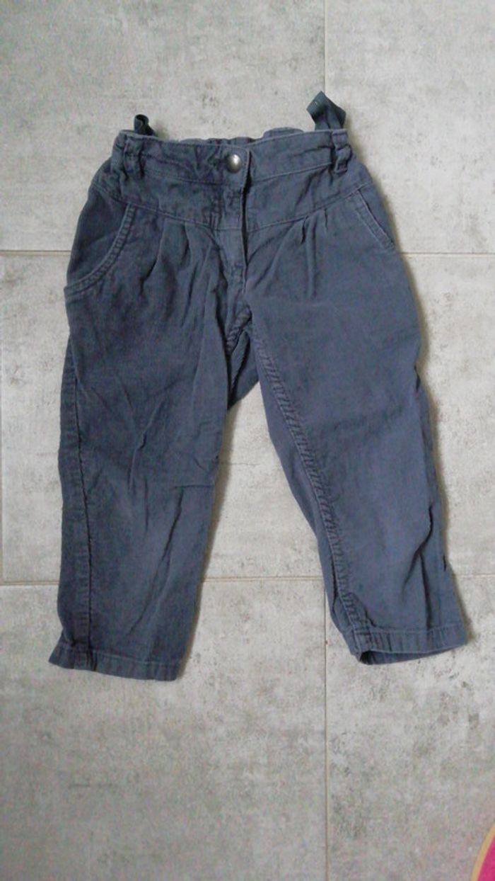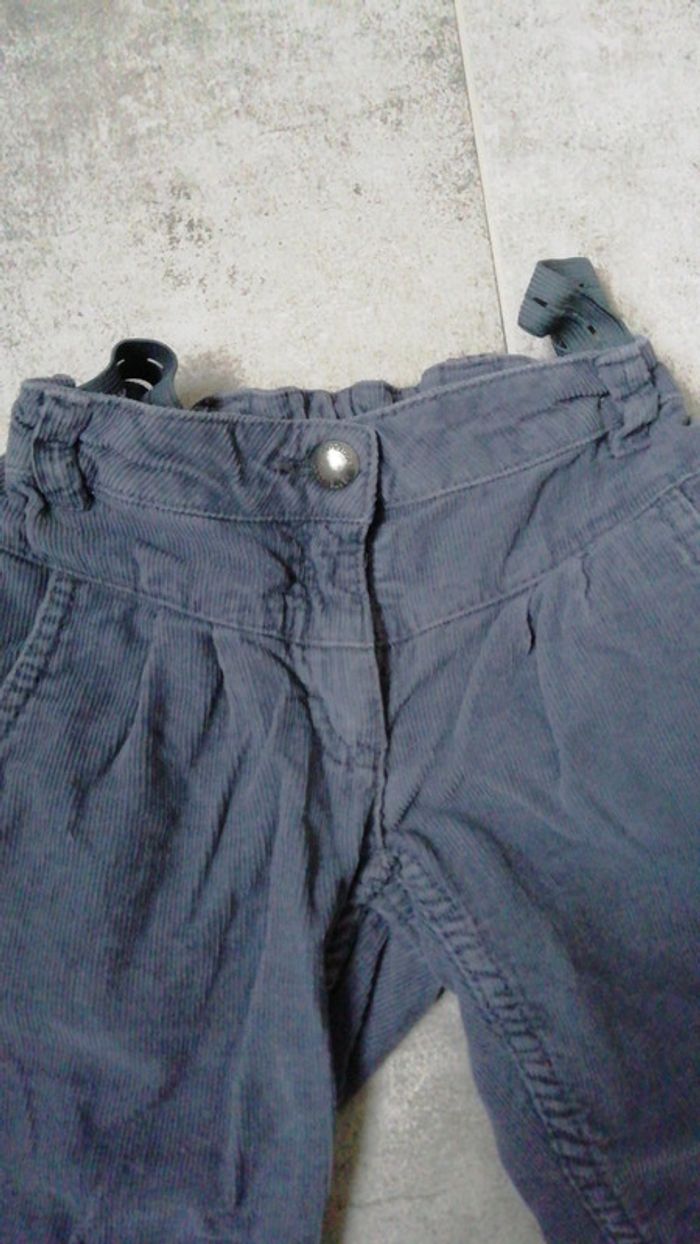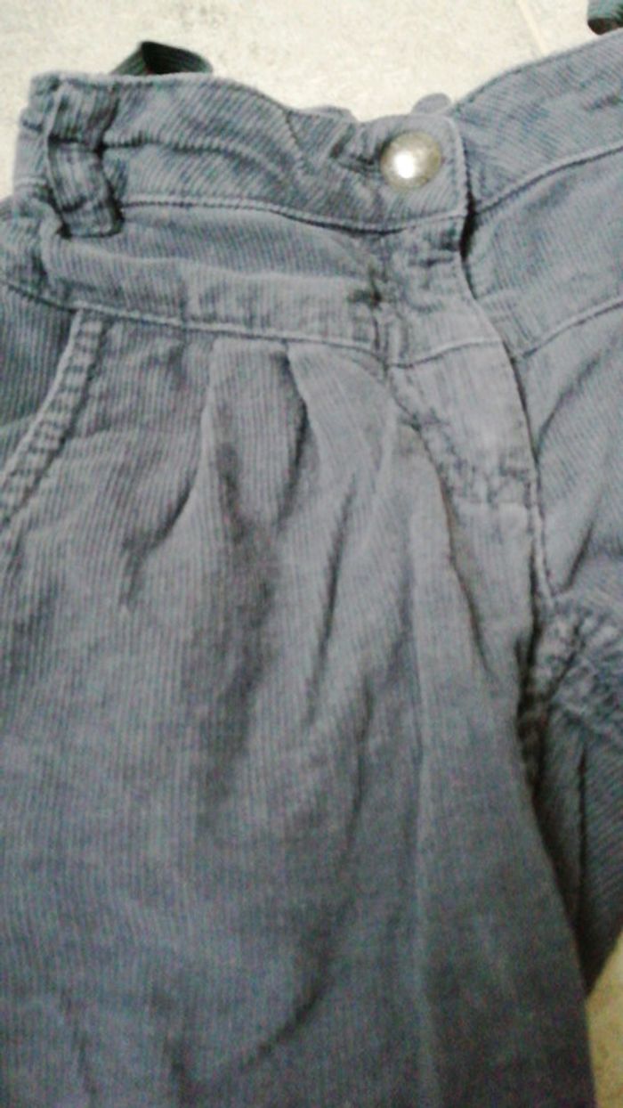 Pantacourt en velour côtelé gris 100% coton. Taille réglable et élastique. Taille 7ans sur étiquette mais je le met en 6 ans cela correspond bien.