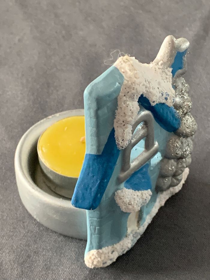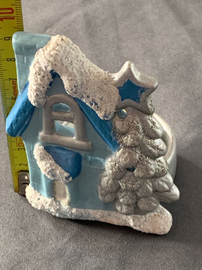 Photophore maison sapin Noël déco bleu/gris - photo numéro 4