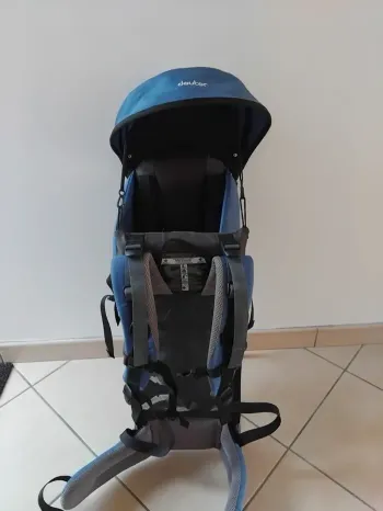 !!!A VENDRE!!! Sac de portage (max 18Kg) de marque DEUTER. Très confortable pour le porteur ainsi que pour l'enfant (les miens y dormaient paisiblement en randonnée). Protection contre la pluie inclue.Très bon état. Prix demandé: 150€ (valeur nouveau avec protection >300€)