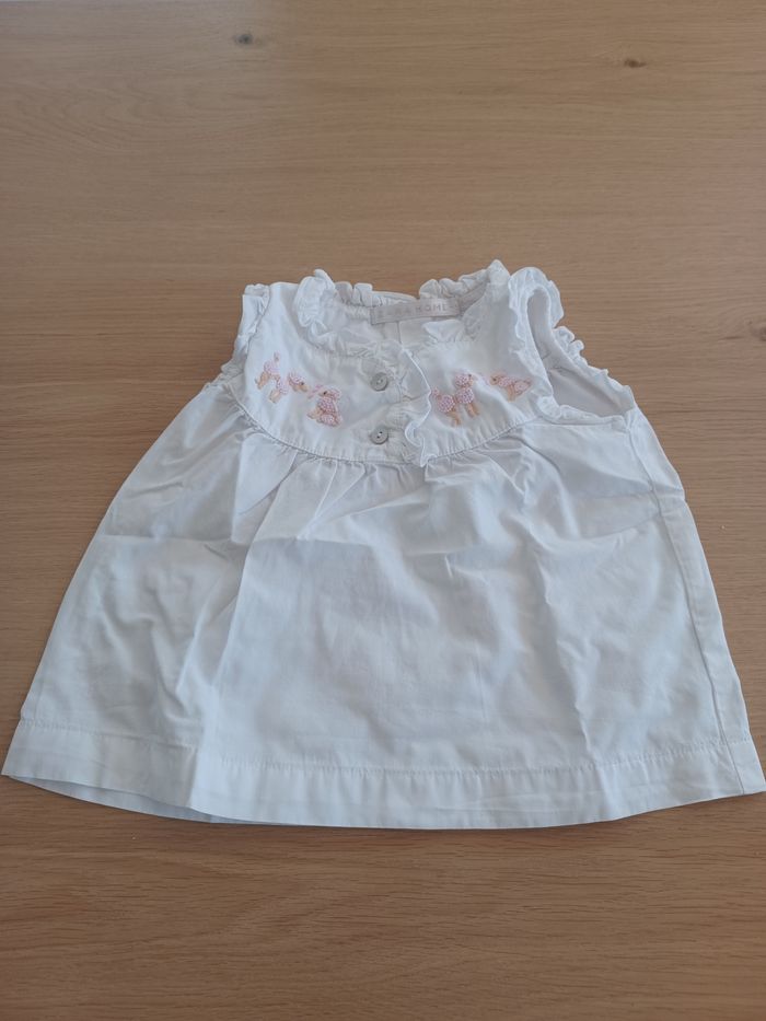 1 ere photo : Ensemble Chemisier haut Rayé Rose et Blanc avec son pantalon blanc - marque Miracle of love pour 6 mois 2 eme photo : Chemisier sans manche avec petits sujets brodés - marque ZARAHOME pour 6 / 12 mois