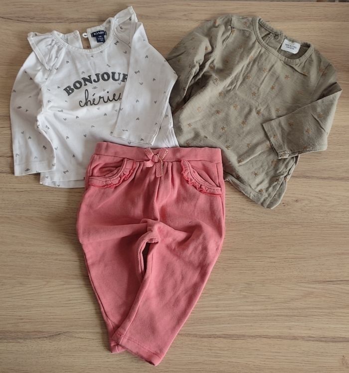 Sarouel rose Tape à l'oeil T-shirt vert Tape à l'oeil T-shirt blanc Kiabi #ensemblefille #ensemblebebe #ensemble6mois #ensemble6moisfille #6mois #6moisfille #ensemblehiver #ensemblehiver6mois #ensemblehiver6moisfille