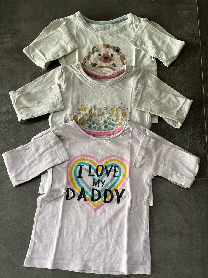 Lot de 3 tee-shirts manches longues taille 24-36 mois Primark taille un peu grand Bon état général Remise activée dans mon dressing 🤩