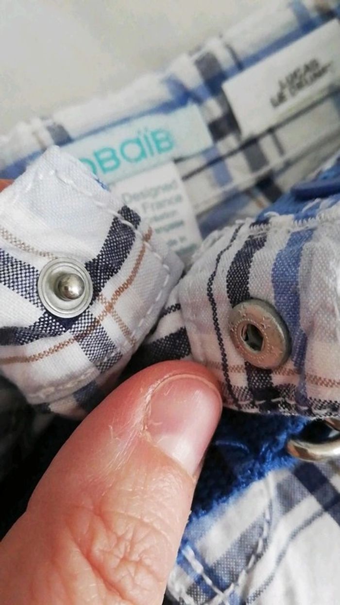 Très bon état. Short à carreaux. Marque obaibi Taille 6 mois Fermeture par pression. Très sympa pr l été Couleur bleu, bleu clair et orange #lolo84400garcon6mois