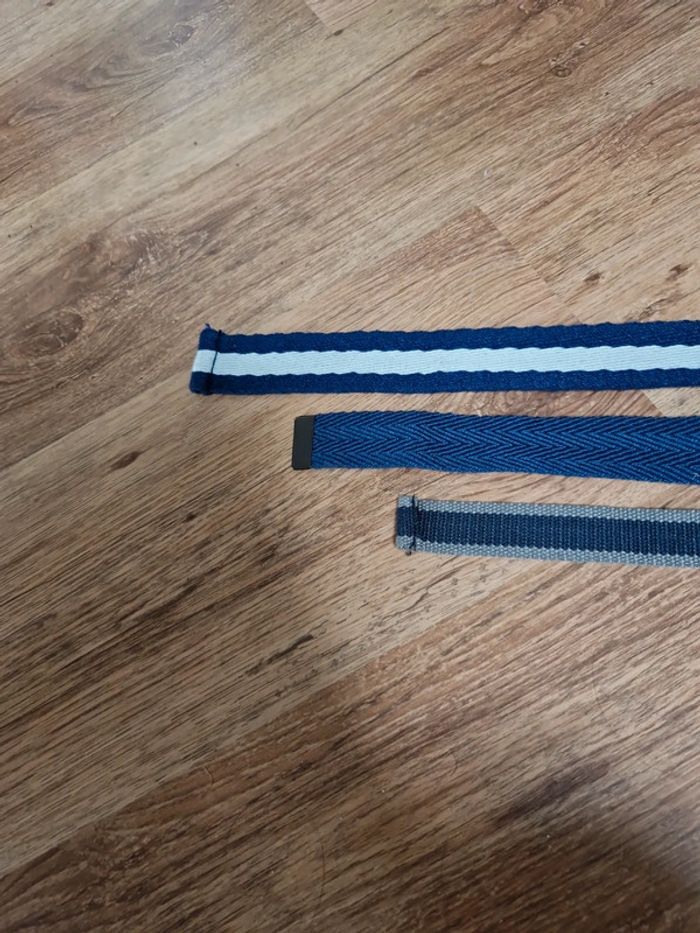 Lot de 3 ceintures bleu. Je ne connais pas la.taille exact mais je dirais jusqu'au 3/4 ans.