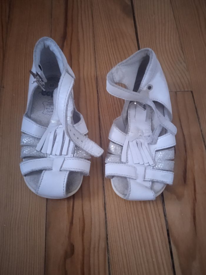 Sandale blanche fille taille 22 marque bopy en cuir en très bon état