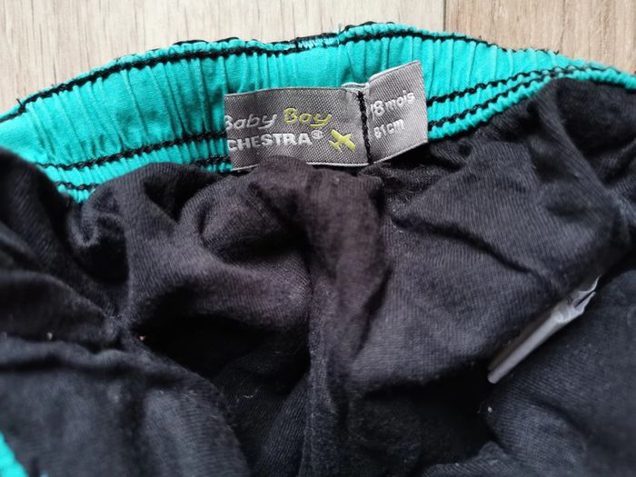 #delph1n3_bebe_18mois Pantalon épais à poches noir et ceinture intérieure vert menthe de marque Orchestra taille 18 mois En excellent état. Très peu porté.