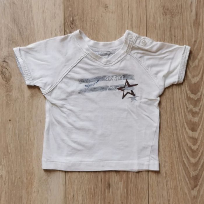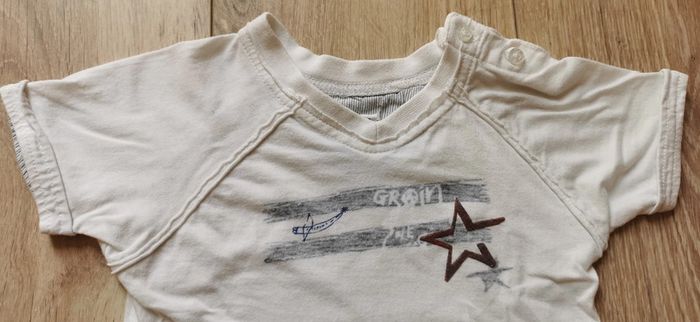 #delph1n3_bebe_6mois T-shirt à manches courtes blanc avec dessins d'étoiles de marque Grain de Blé taille 6 mois