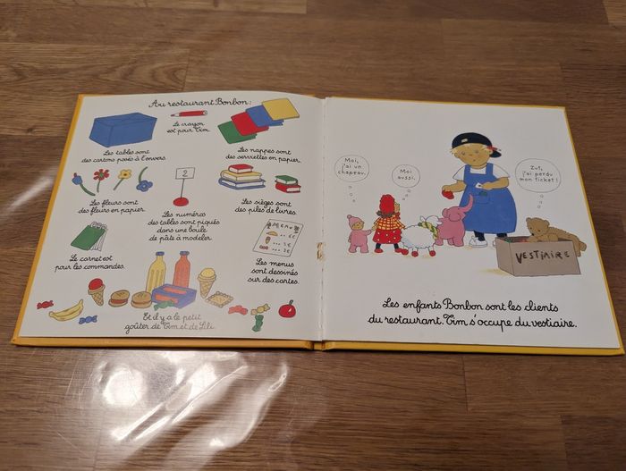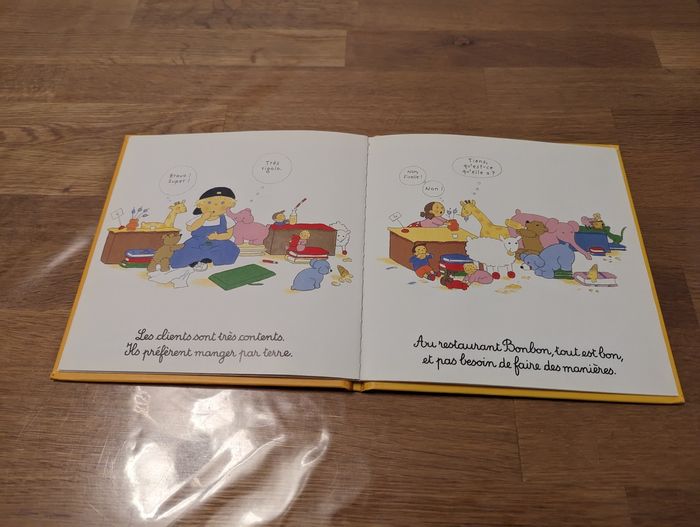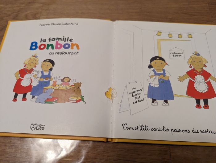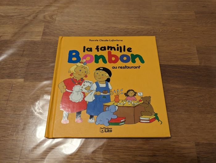 Livre la famille Bonbon au restaurant Beaucoup utilisé, des pages sont abîmées au niveau de la reliure, mais ne gêne en rien la lecture, voir photos.