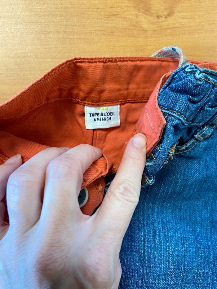 1 jean boss 1 jean Zara 1 pantalon corail / rouille tape à l’œil 1 short h &m 1 jean Timberland