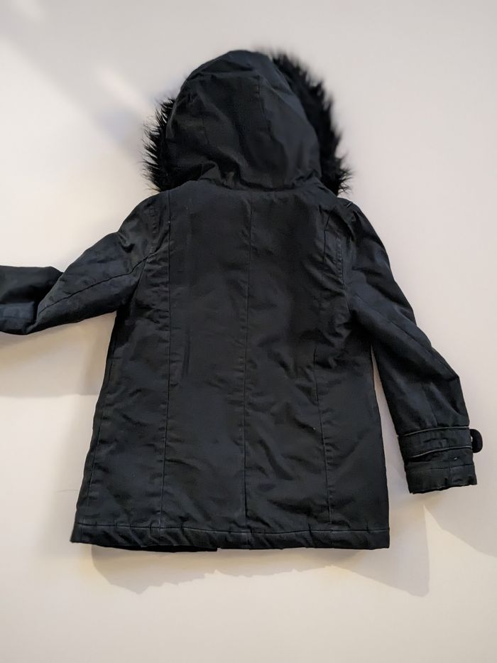 Attaches style duffle-coat (certaines rayées cf photos mais tiennent très bien), intérieur matelassé. Capuche. Fermeture éclair en plus pour tenir au chaud.