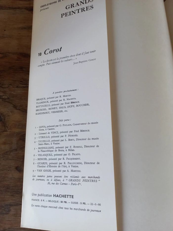 Collection hachette Les chefs-d'œuvre d'art Les grands peintres Corot Des années 1966 Présentation et photos d'œuvres de l'artiste 26.5 centimetres x 35.5 centimetres