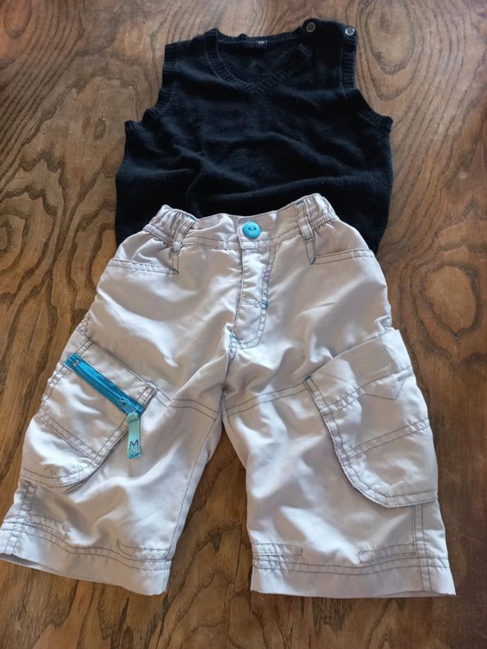 Pantacourt gris et bleu 3 ans mini gang Pull noir sans manches 23 mois