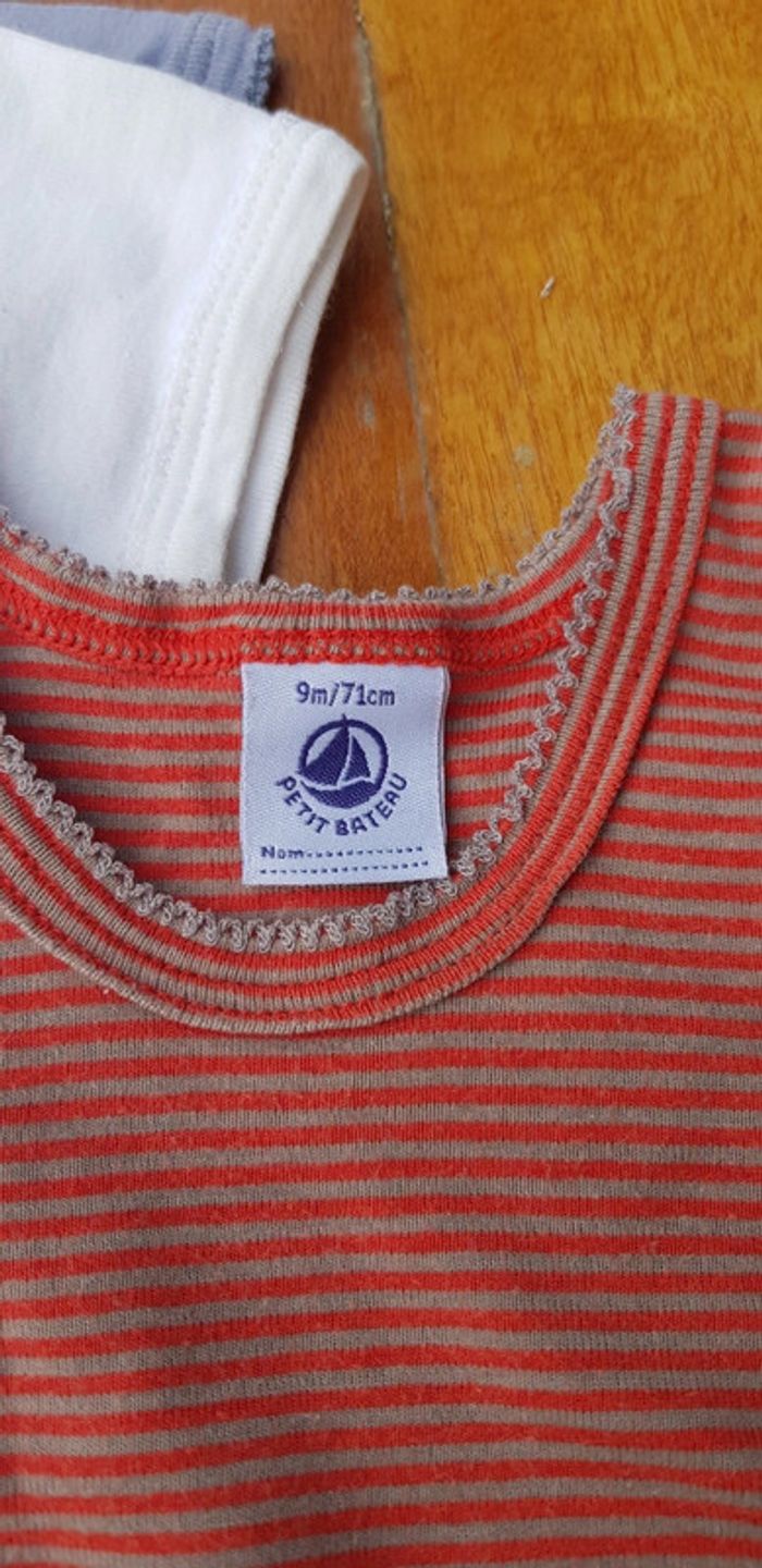 3 à manches longues (2 Petit Bateau et 1 Pommette), 1 manche courtes (Petit Bateau) et 1 débardeur fort pratique au moment du printemps 😉😋 #petitbateau #9moisgarçon