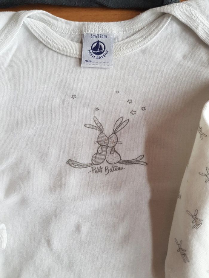 En très bon état. Une trace jaune sur le col du dernier bodie, cf. photo. #petitbateau6moisfille #petitbateau #bodies6mois
