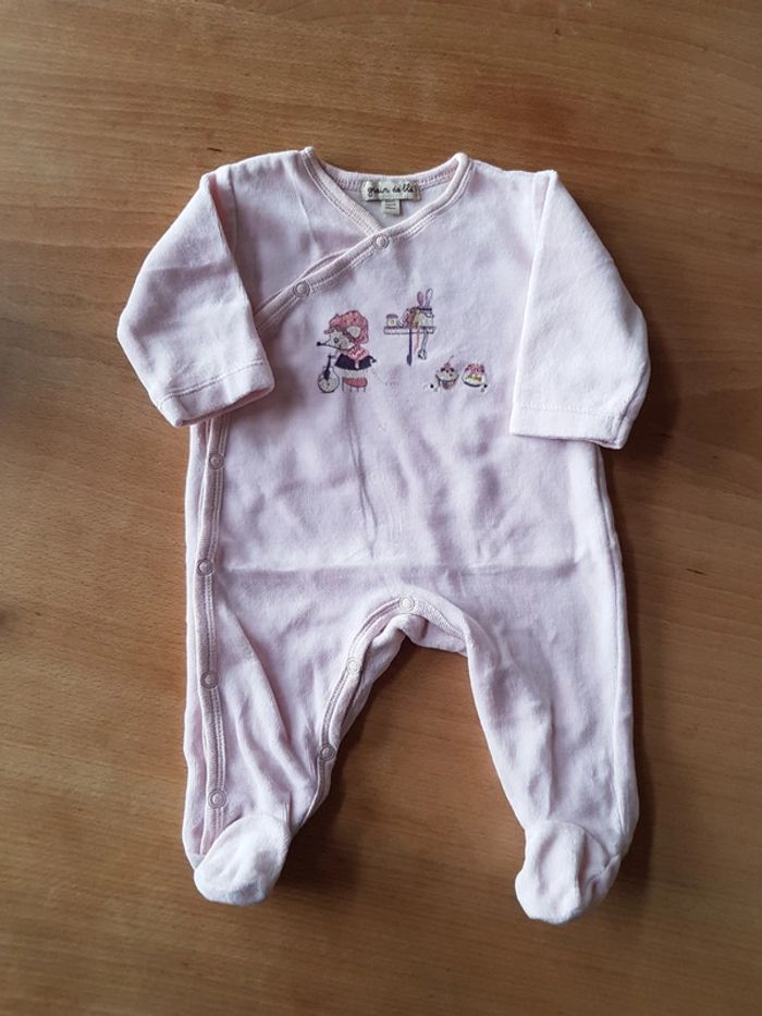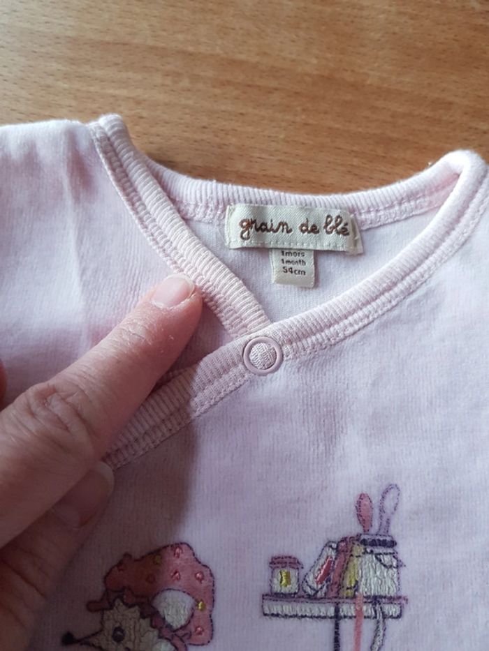 En très bon état. Grain de blé, 1 mois. A une trace jaune sur le col coté gauche, illustrée en photo. #1moisfille #dorsbien