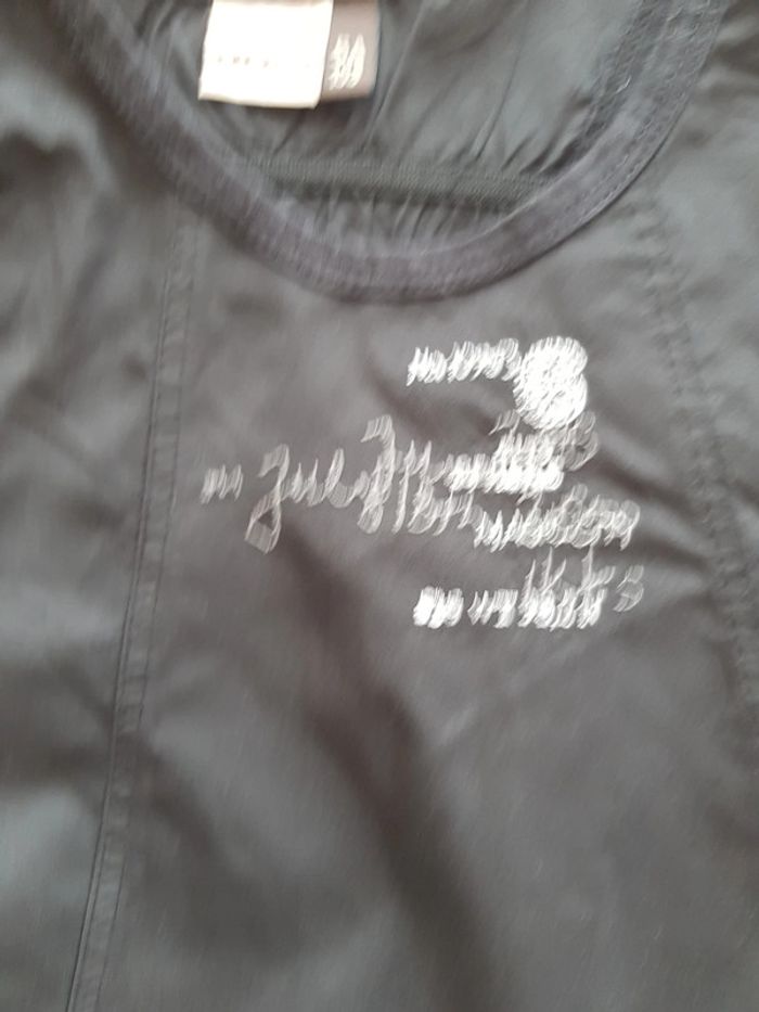 Tissu ultra léger façon toile de parachute, idéal toutes saisons car combinables manches courtes ou longues ou juste sans rien!😉 Très peu portée, ma fille en préférait une autre multicouleur...😅 Le bas termine comme un effet boule.