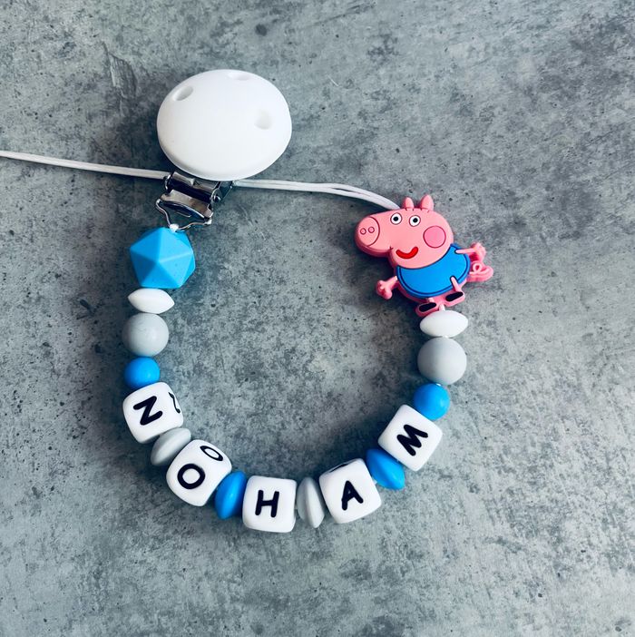 Attache tétine personnalisé en silicone ou en bois au souhait de l’acheteur . Personnalisable au choix de l’acheteur que ce soit la couleur comme le prénom ou le thème . Le fil est doublé pour plus de sécurité tout le long de l’attache tétine. N’hésitez pas à me demander et regarder mon dressing. Une photo vous sera envoyée avant l’expédition pour vous ayez un aperçu du rendu. Tous les produits sont réalisés avec du materiel spécial conçu aux bébés , enfants.