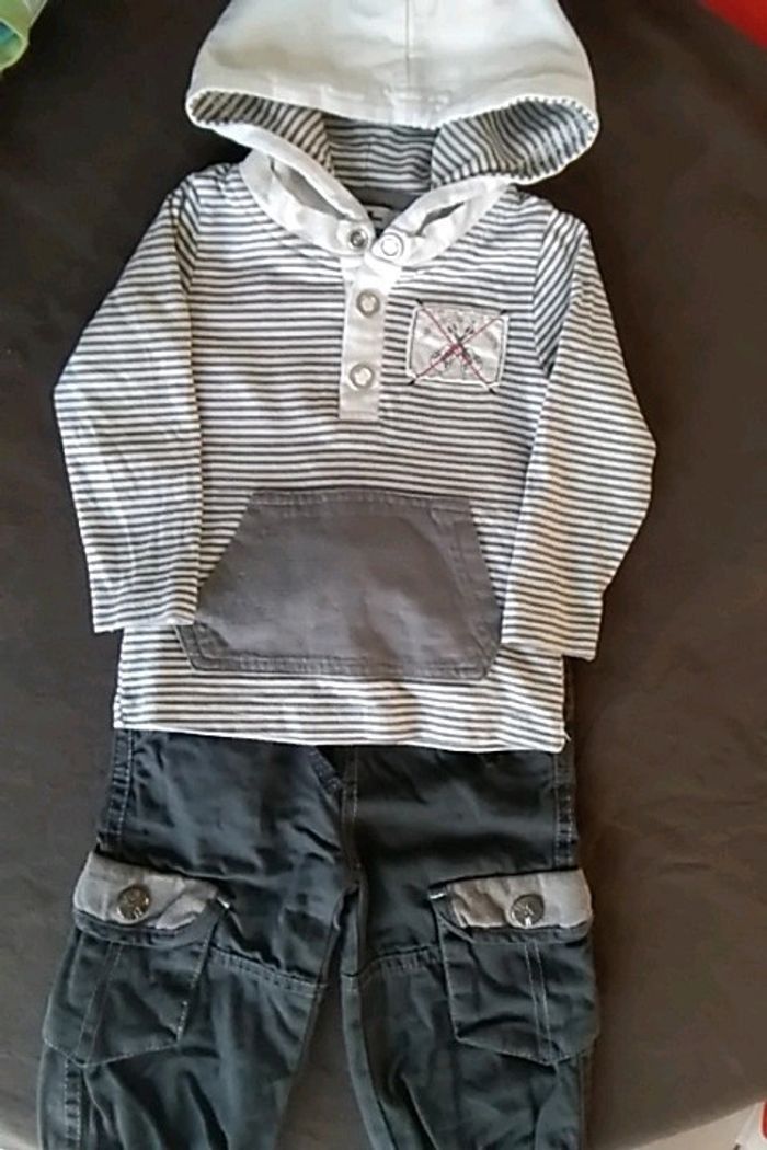 Vends ensemble (plutôt pour automne/hiver) Pantalon taille élastique Haut capuche #Garçon9mois