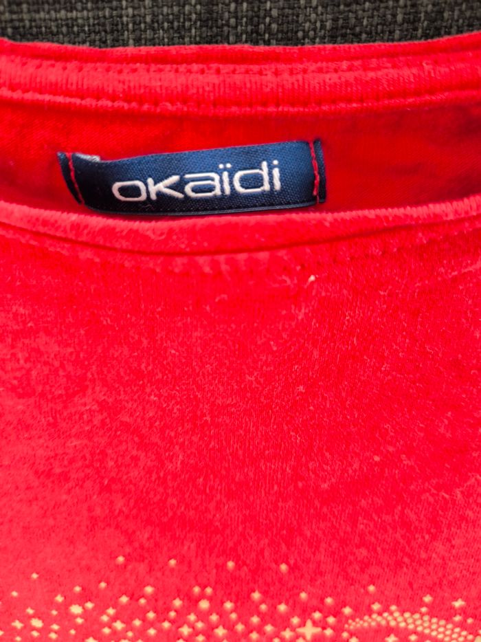 Vend T shirt rouge Taille 12 ans Marque Okaïdi Motif coeur, étoiles dorées devant Très bon état