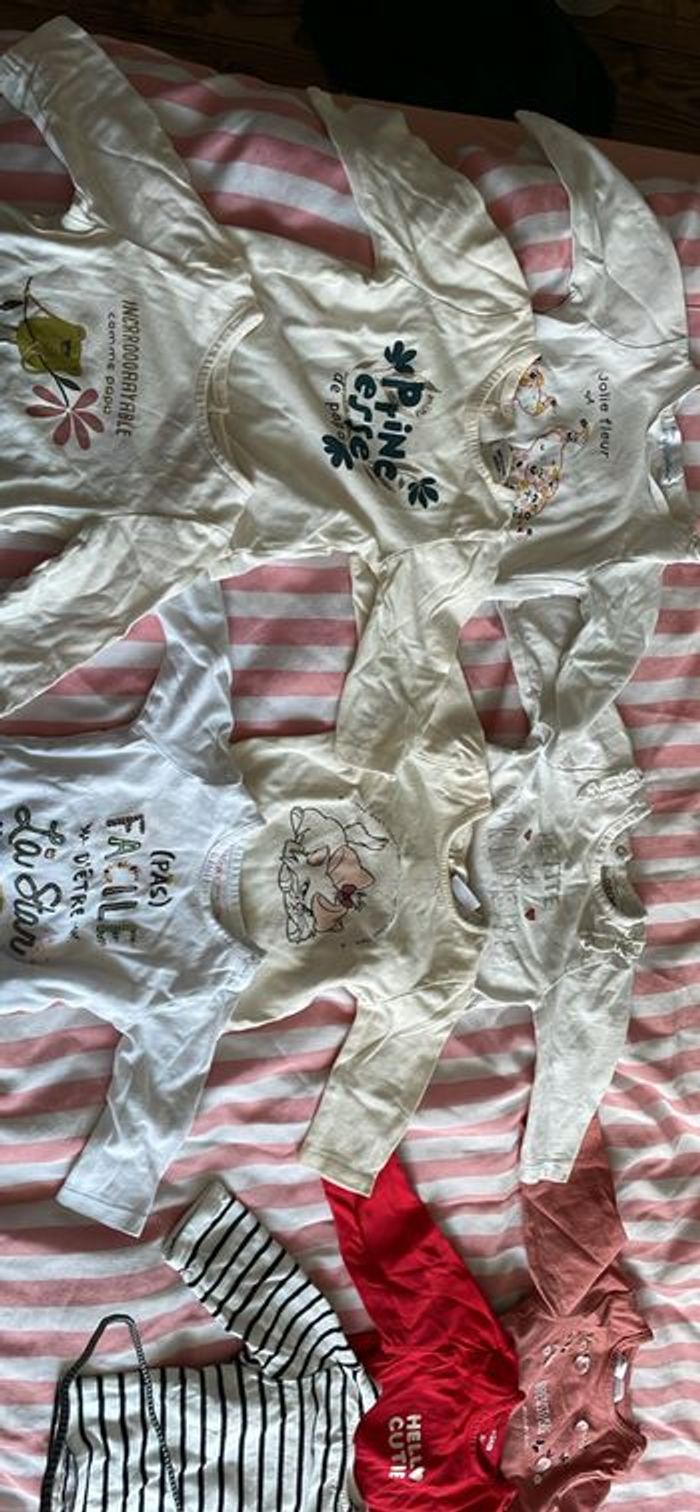 Lots de 100pièces (t-shirt manche courte/manche longue/debardeur, pulls, jean, leggings, body manche courte/manche longue, Combi shorts gilets, ensemble robe salopette etc) de toute marque confondu (orchestra/ tape à l’œil/ Kiabi…)