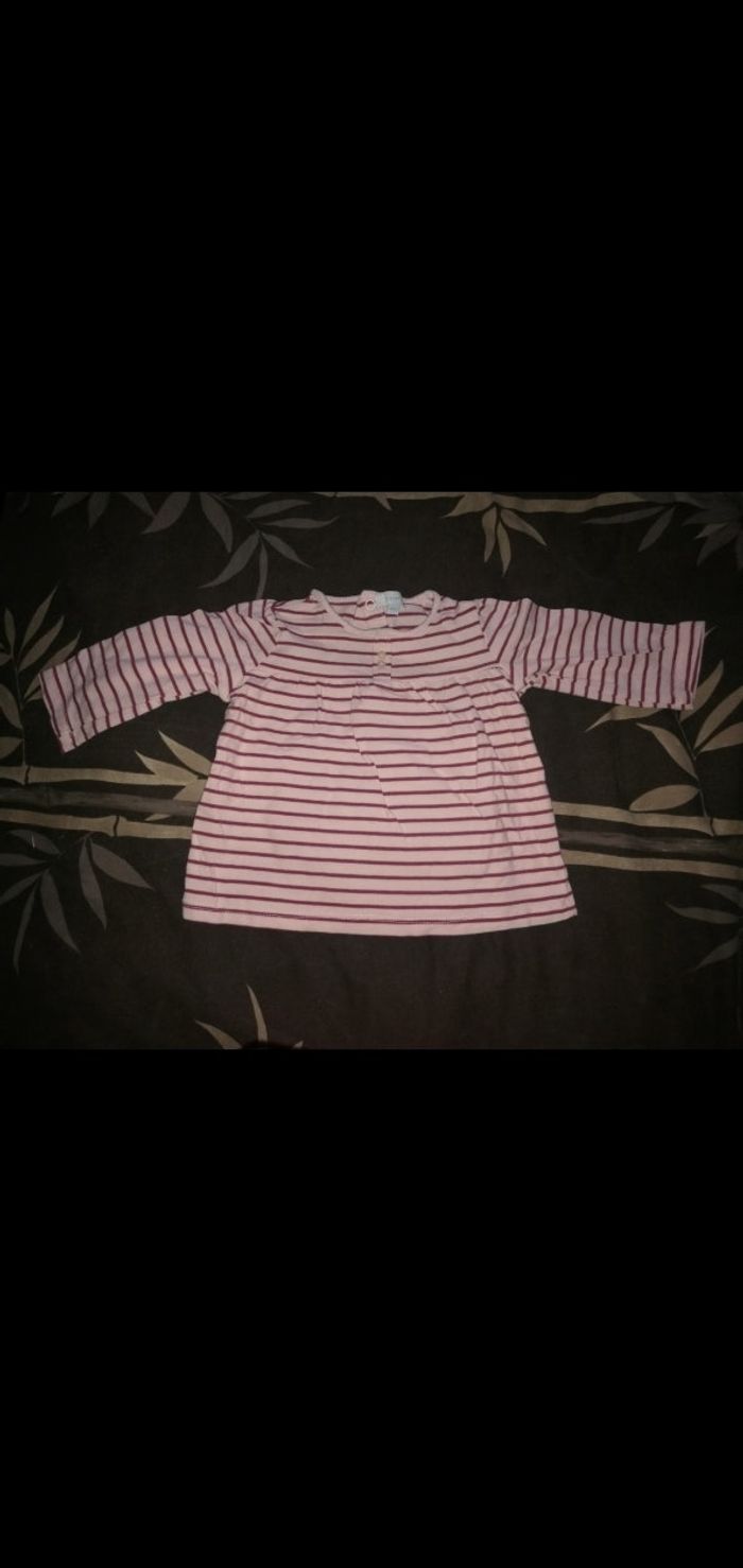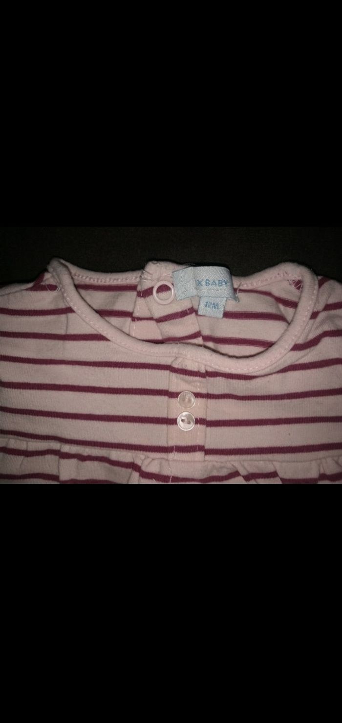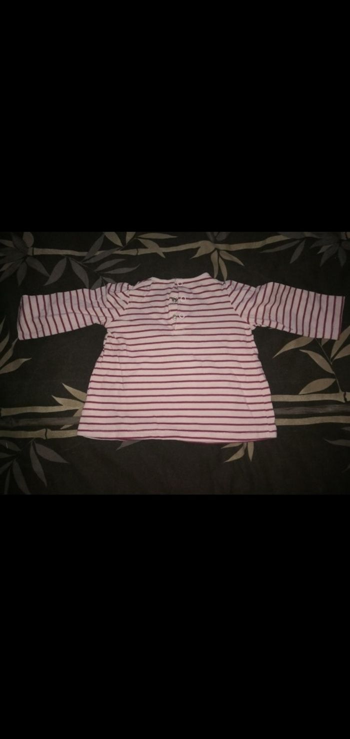 Tee shirt 12 mois manches longues rayé rose/bordeaux Tex - photo numéro 3