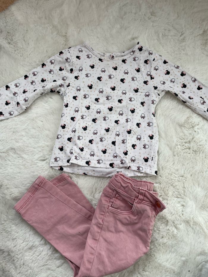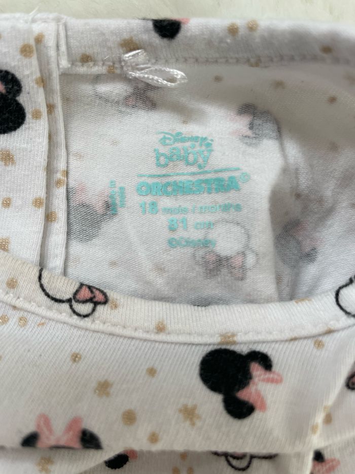Ensemble Orchestra taille 18 mois. Bon état car tee-shirts Disney Minnie taché aux manches et une tâche sur le pantalon qui y était a l’achat. Voir photos.
