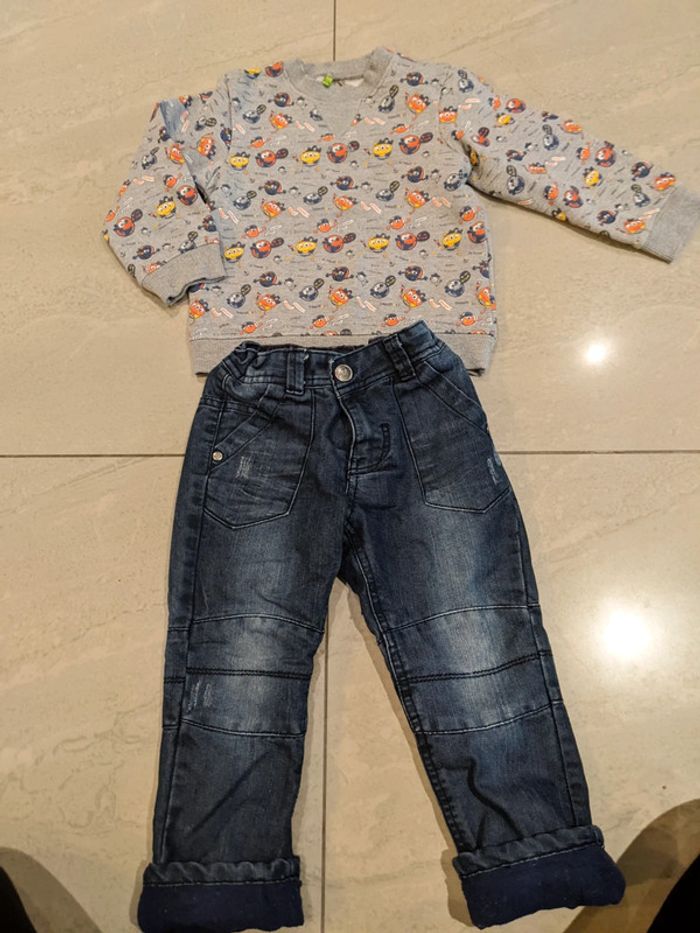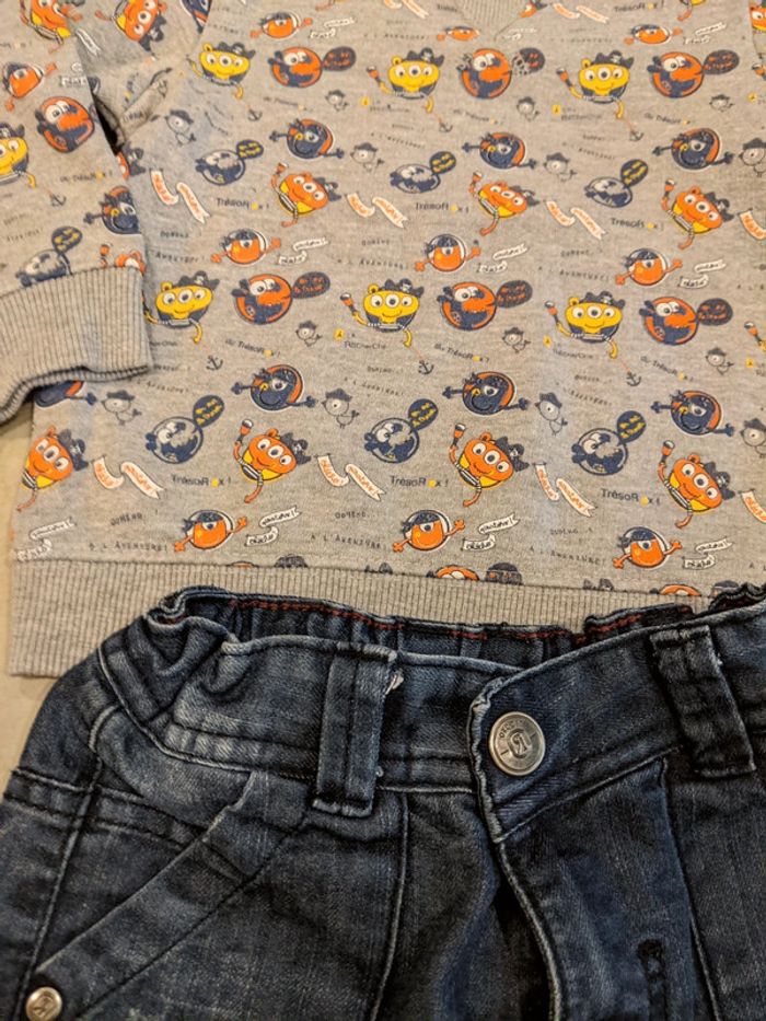 État nickel , hyper chaud : sweat molletonné et pantalon fourré polaire Le sweat est un taille 23 mois mais taille immense Remise sur les lots