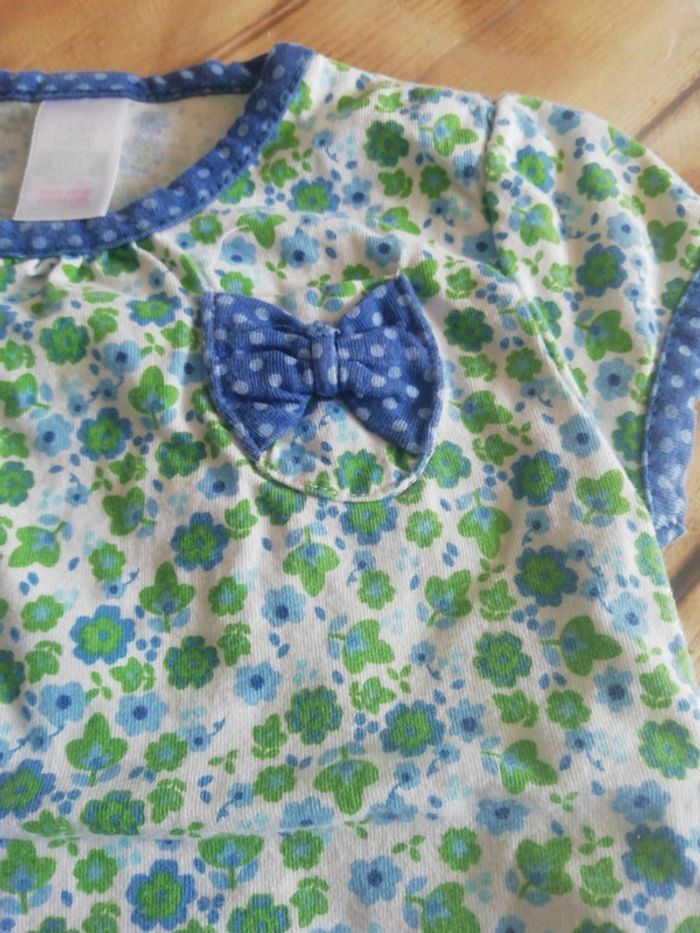 Tee-shirt à manche courte à petite fleurs bleu et vert taille 6/9 mois