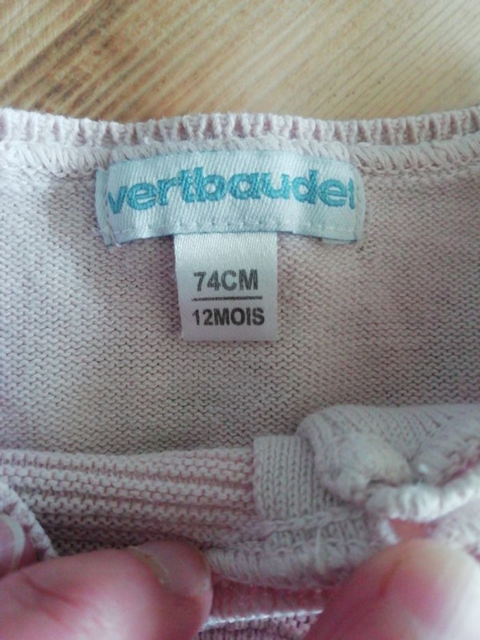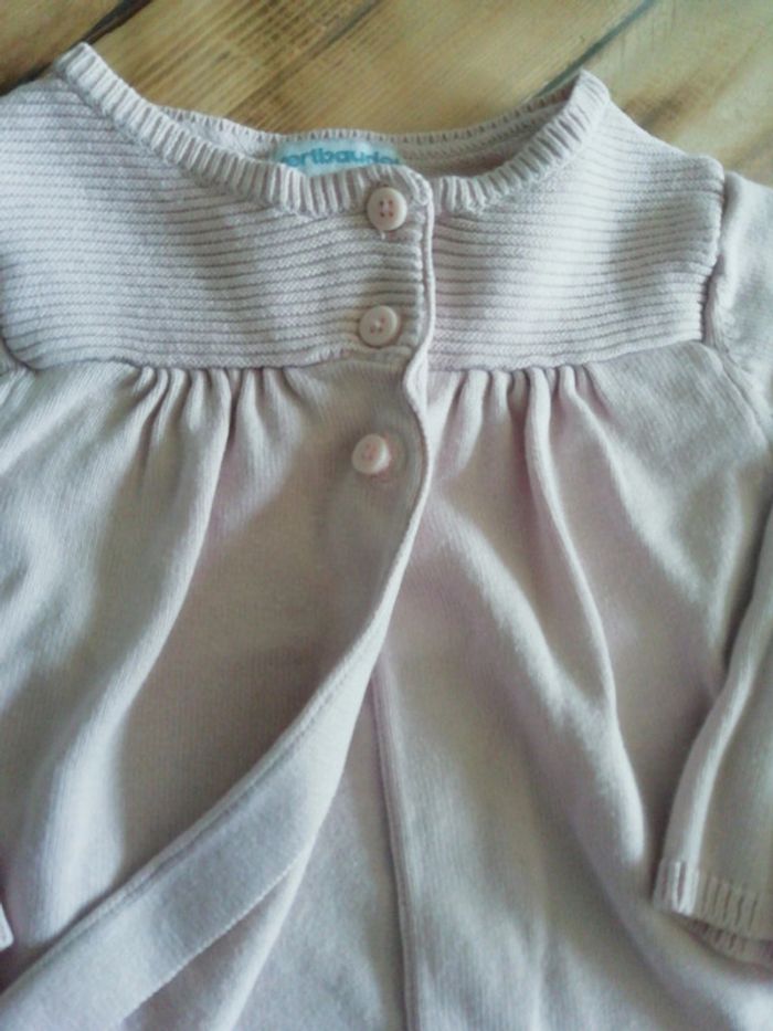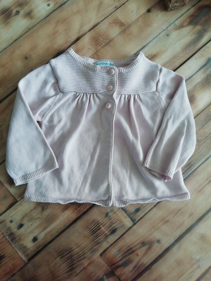 Petit gilet rose clair taille 12 mois (74cm) en très bon état.