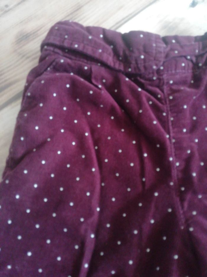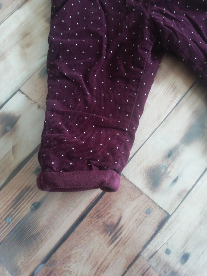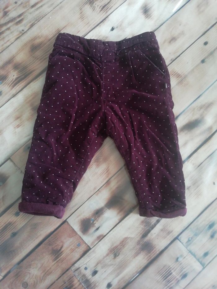 Pantalon en velour doublé à l'intérieur taille 12 mois (74cm) couleur bordeaux à petit pois.