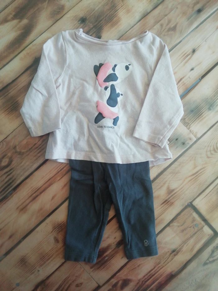 Petit ensemble en coton taille 1 mois (53cm) qui comprend 1 tee-shirt à manche rose et sont legging gris foncé.