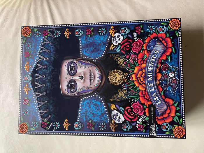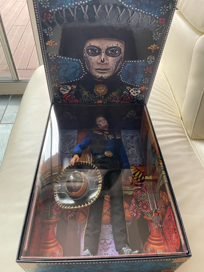 Barbie signature Ken Jour des Morts 2022. Neuf boîte scélée. Une cravate de crânes en sucre et un chapeau avec une bande dorée mettent la broche finale à l'ensemble. En outre, il porte la face peinte avec un motif de tête de mort frappant. Avec certificat d’authenticité