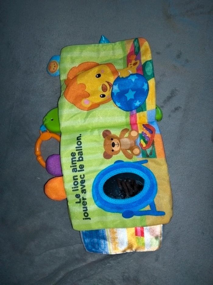 Livre tissu musical/sonore Différents volume de son Avec crochet pour mettre à la poussette, transat,lit Piles non fournies En très bon état