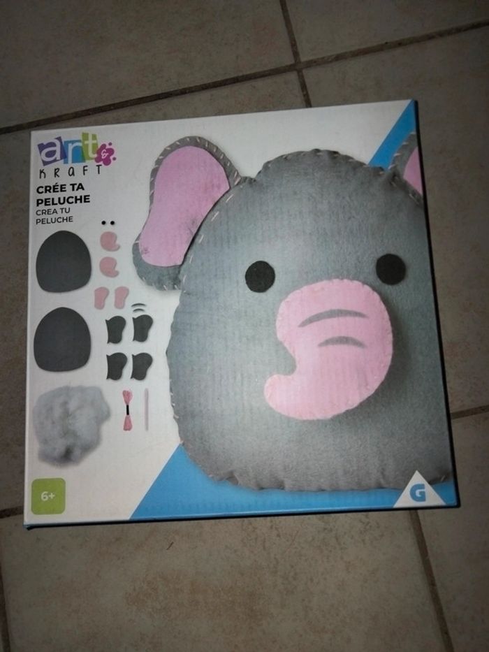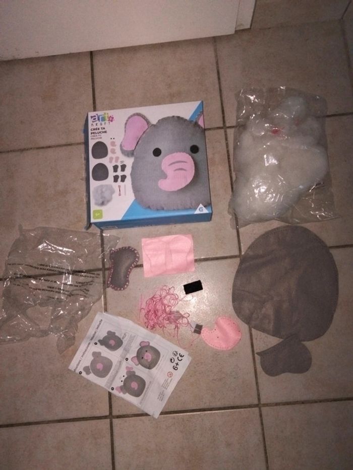 Crée, fabrique ta peluche éléphant Jeu créatif Juste une oreille de faite Feutrine, aiguille en plastique,notice...