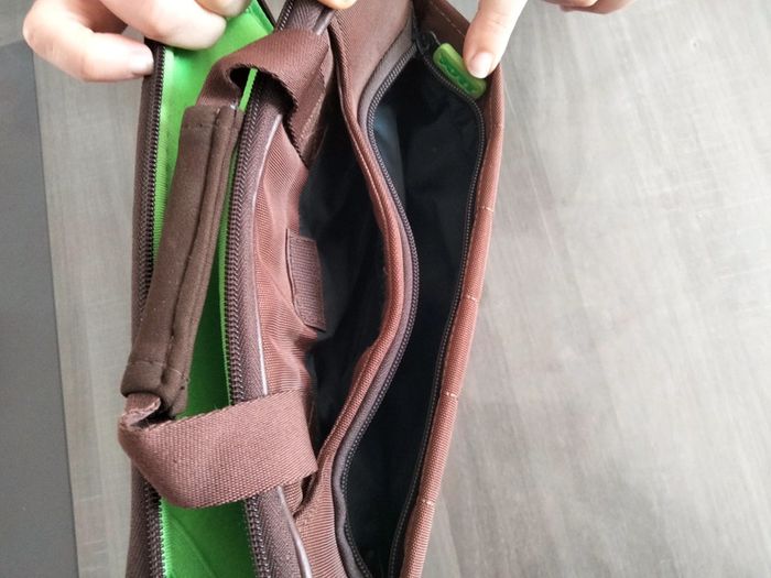Pochette, range tablette , une poche sur le côté avec fermeture éclair, et deux poche de chaque côté a scratch Dimensions : 30 cm de longueur hauteur 24 cm