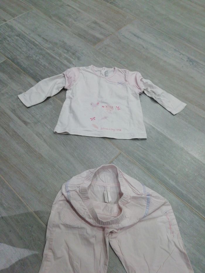 Ensemble léger Haut manche longue, légèrement tâcher sur l'arrière, voir dernière photo + pantalon léger 18 mois fille Bon état général